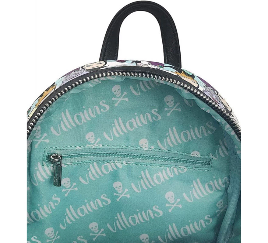 Pero sin duda lo más sorprendente es su diseño, repleto de estampados de las Villanas Disney más famosas, Maléfica, Úrsula, Cruella DeVil y Lady Tremaine lo cual hace una combinación de colores espectacular junto al negro que forma parte de las cremalleras y las asas de la mochila.