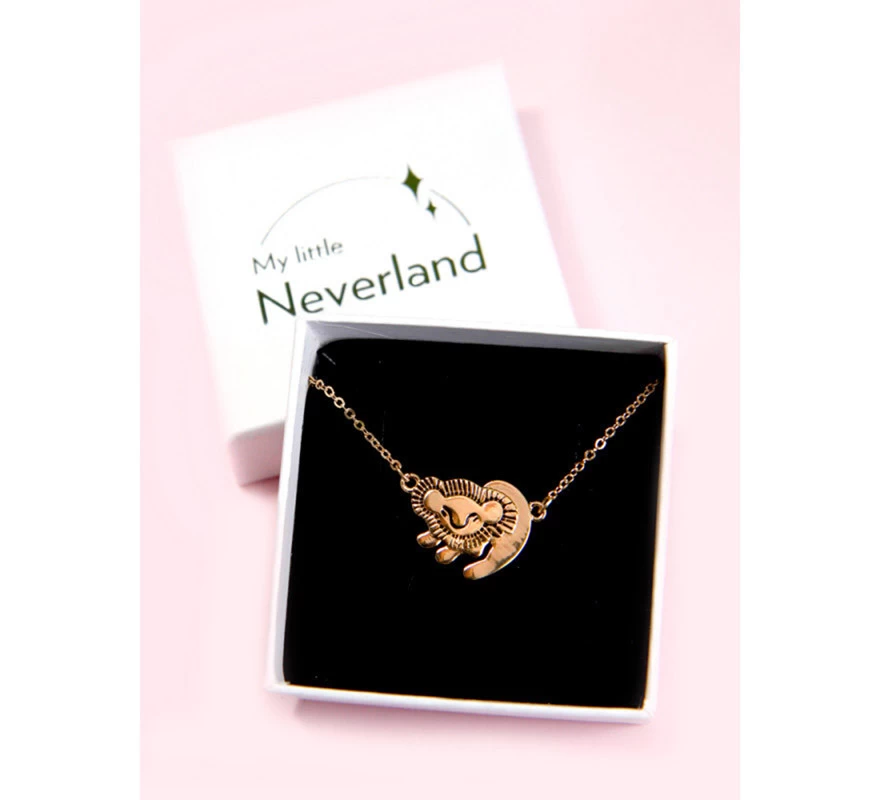 Se trata de un delicado colgante con acabados en dorado que destaca por una pieza principal con la forma de la silueta del león que todos conocemos y que hace que nos acordemos de nuestro querido Simba. Está fabricado acero para que no te de alergia y cuenta con unos acabados de gran calidad, junto con una cadenita muy elegante.