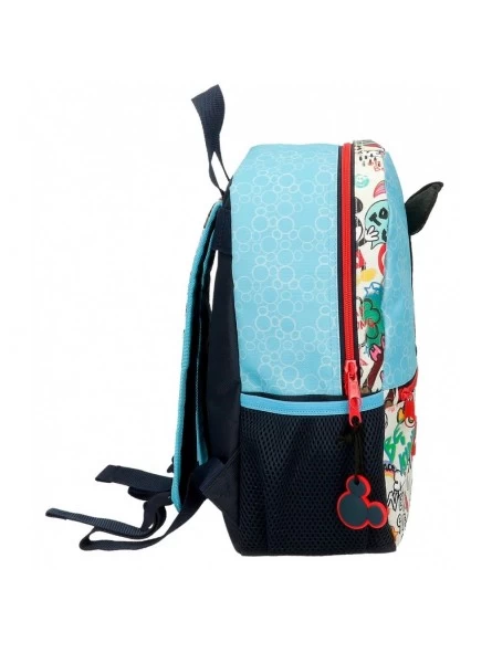 Dos bolsillos laterales y un bolsillo frontal para guardar la botellita de agua, pequeños accesorios y el almuerzo.