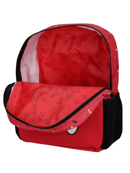 Dos bolsillos laterales y un bolsillo frontal para guardar la botellita de agua, pequeños accesorios y el almuerzo.
