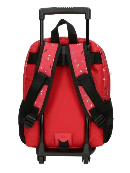 Incorpora un carro con ruedas de silicona y sistema Magic Fix para conseguir una mayor sujeción de la mochila al carro.