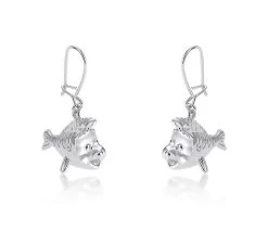 En esta ocasión, Disney Couture, nos trae unos preciosos pendientes basados en una de las películas más divertidas y coloridas de la factoría Disney: La Sirenita. Estos pendientes tienen la forma del simpático pez Flounder. Están chapados en oro blanco de 14 kilates, y fabricados en titanio. Miden aproximadamente 15 x 20 mm y son aptos para orejas perforadas.