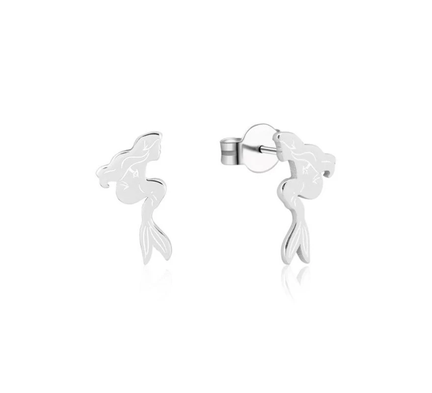 En esta ocasión, Disney Couture, nos trae unos preciosos pendientes basados en Ariel de La Sirenita, sin duda uno de los personajes más queridos de la factoría Disney. Están acabados en plata de ley, y aparece Ariel con la melena ondeando y esa cola de sirena tan característica. Miden en torno a 12 mm y son aptos para orejas perforadas.