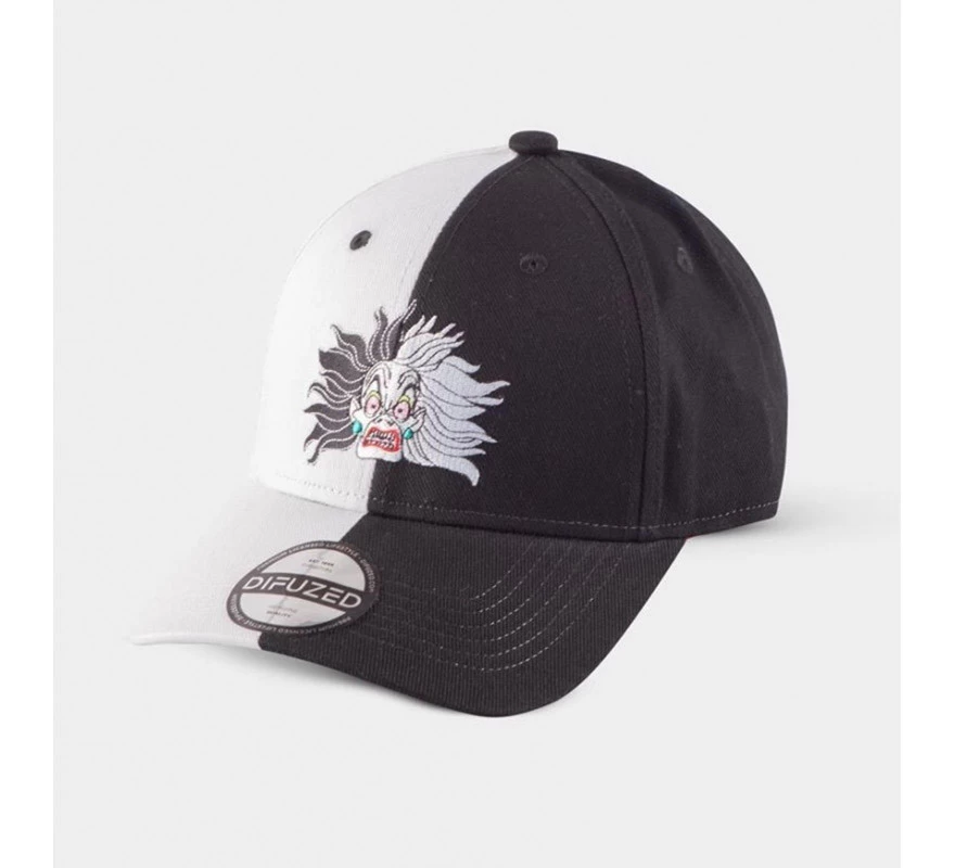 Una gorra de visera curva ajustable absolutamente imprescindible para cualquier fan de las Villanas clásicas de Disney, y en especial de la genial Cruella.