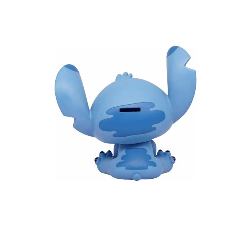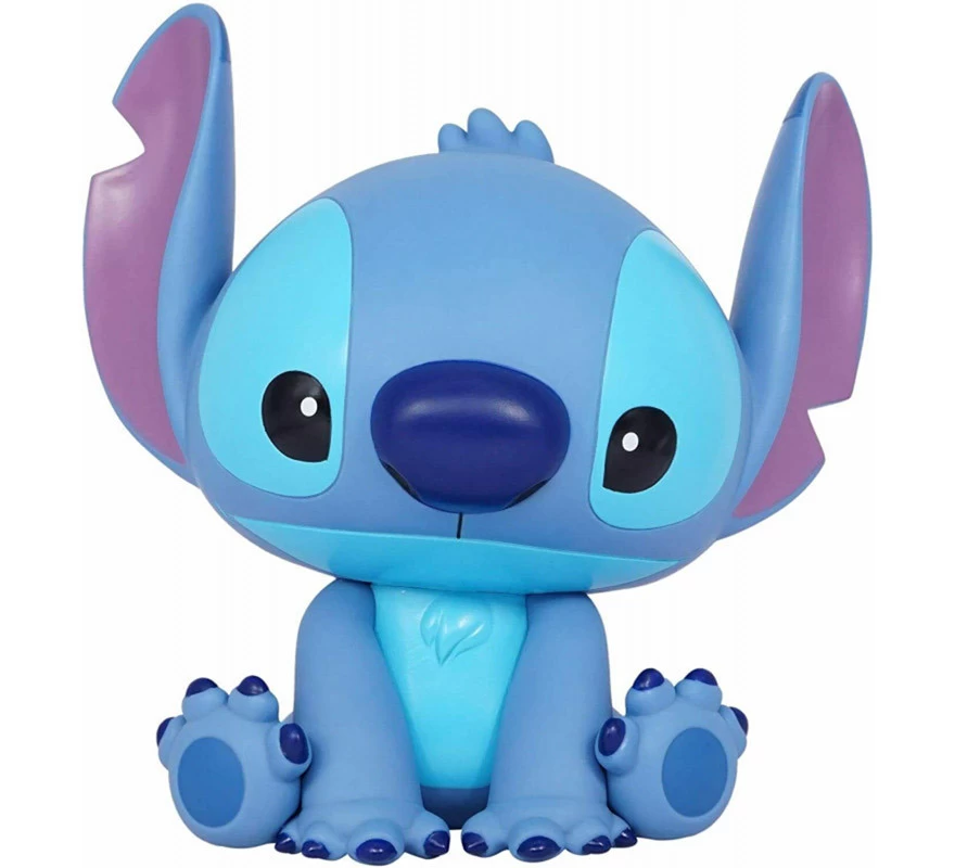 Se trata de una figura-hucha de unos 20 cm de alto aproximadamente, cuya calidad de materiales y diseño son extraordinarias, y que reproduce de forma muy cuqui a Stitch. No te pierdas la cantidad de detalles fieles al original que tiene esta hucha, cualquiera lo querría tener expuesto en sus baldas o vitrinas, ya que además de una discreta hucha, es una figurita de Stitch muy bien hecha.