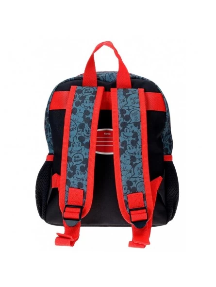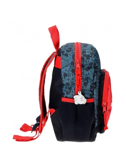 Dos bolsillos laterales y bolsillo frontal para guardar la botellita de agua, pequeños accesorios y el almuerzo.